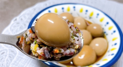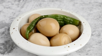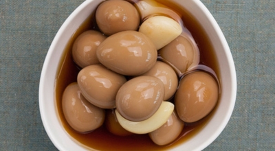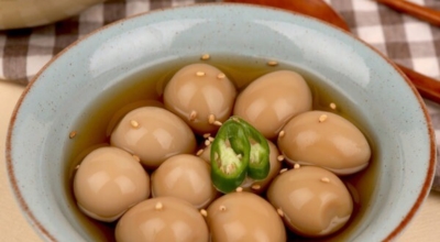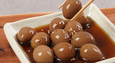 메추리의 알. 계란의 4분의 1 정도 되는 크기로 맛은 계란과 비슷합니다. 그대로 삶아서 소금에 찍어 간식처럼 먹거나 장에 졸여 장조림을 만들어 먹는 것이 가장 일반적입니다. 부담 없는 크기 덕에 식당이나 급식에서도 자주 접할 수 있는 음식입니다.